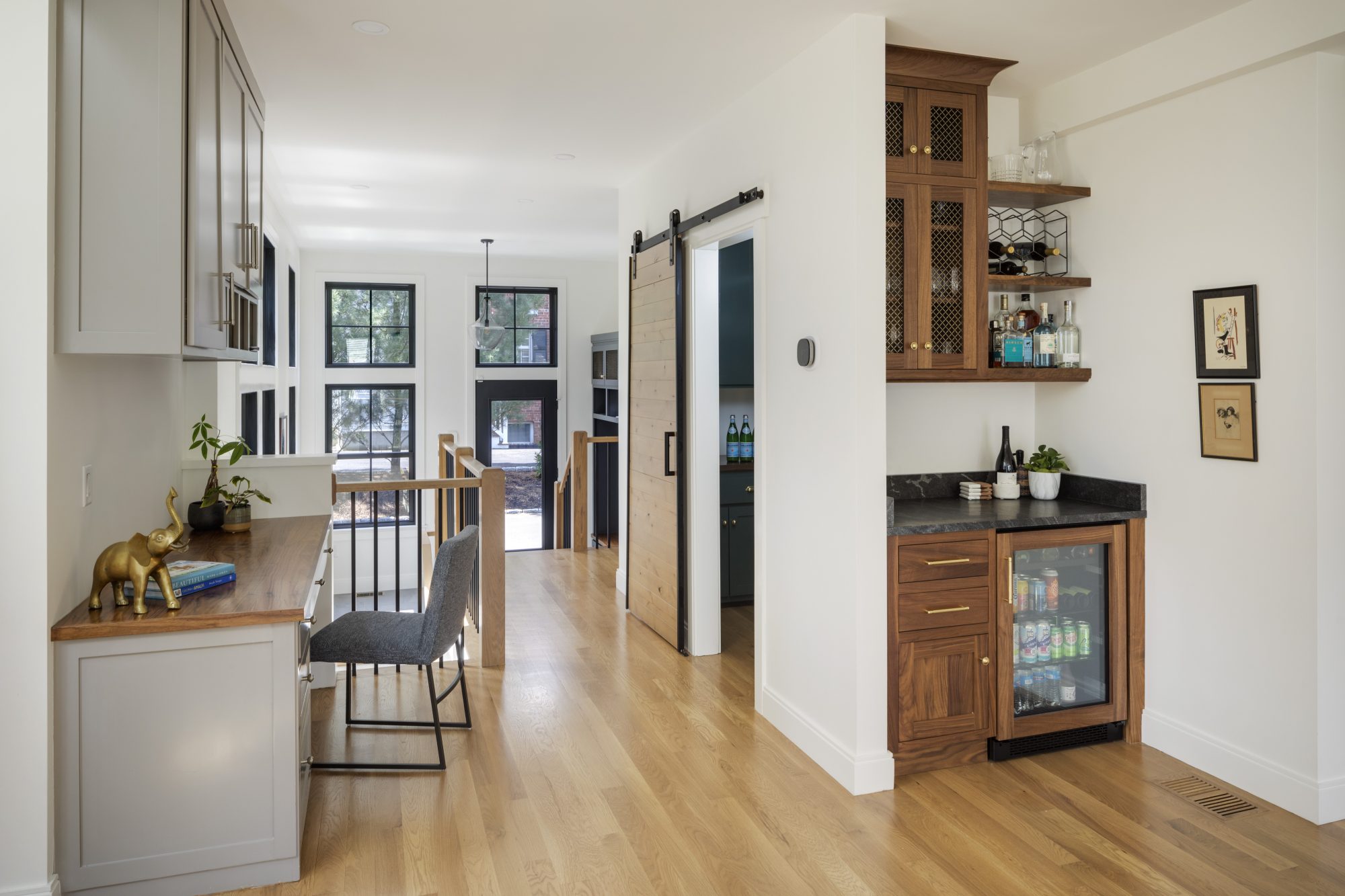 The second addition, located at the rear of the home, introduced a much-needed mudroom. Designed with a family of four in mind, this space provides durable storage and organization while serving as a functional transition zone between the house and yard.